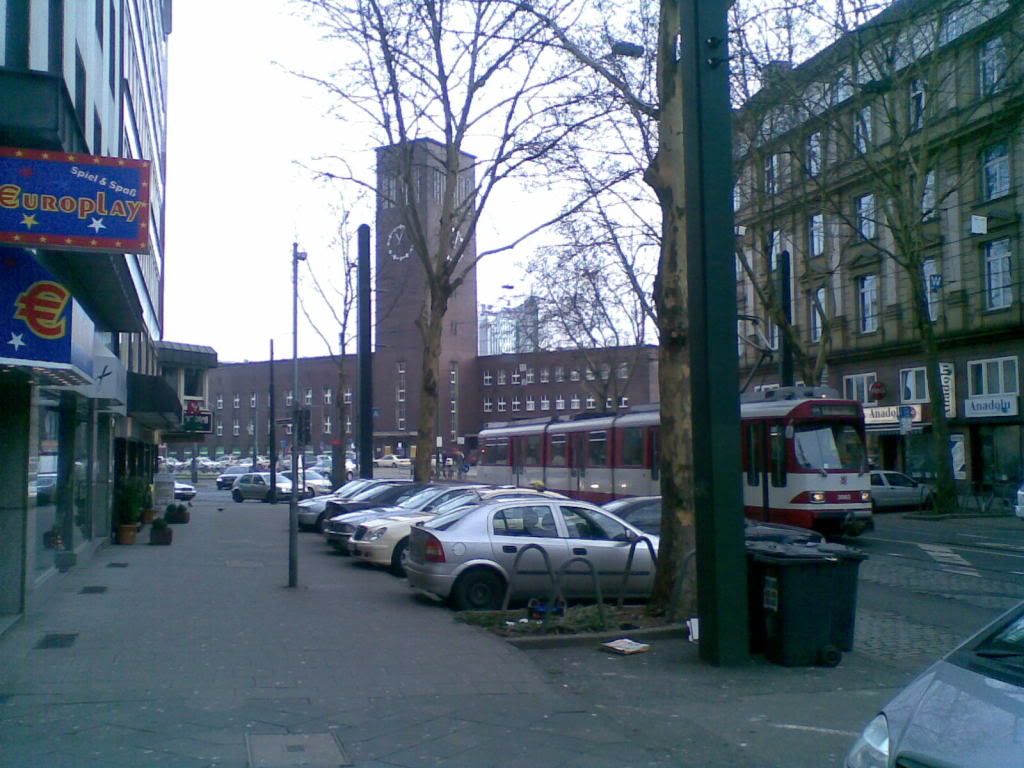 Hotellimme sijaitsi Dusselin päärautatieaseman vieressä. Paikallinen toimiva järjestelmä on, että messulipuilla saa matkustaa julkisessa liikenteessä rajattomasti. Toisin kuin Suomessa suositaan että messuille on pakko tunkea omalla autolla. No oisihan tuolla saanut olla useampi jalkapallokenttä lainassa parkkeeraukseen, jos se olisi ollut toteutettuna "meidän" tyyliin. Huomaa kuvasta juuri ja juuri poisrajautuvat tissibaarit.