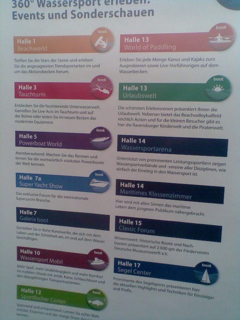 Päätimme lähteä parin henkilön koplalla paskaan maahan, ja koska Räty aikanaan tokaisi Saksan olevan sellainen, varasimme liput paikallisiin venemessuihin. Lento lähti perjantaina, ja paluu oli suunniteltu maanantaiksi. Tuossa ajassa oli optimistinen ajatus ehtiä talsia messuhalleja riittämiin. Ehtihän niissä talsia, mutta kaikkea ei ehtinyt nähdä. Halleja oli tusina ja käytin 2 päivää pelkästään sukelluskamojen hiplailuun. Hallissa oli alkuviikon tietojen mukaan 350 näytteilleasettajaa, ja siltä se tuntuikin.